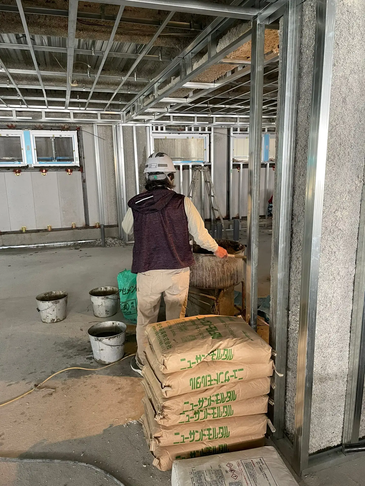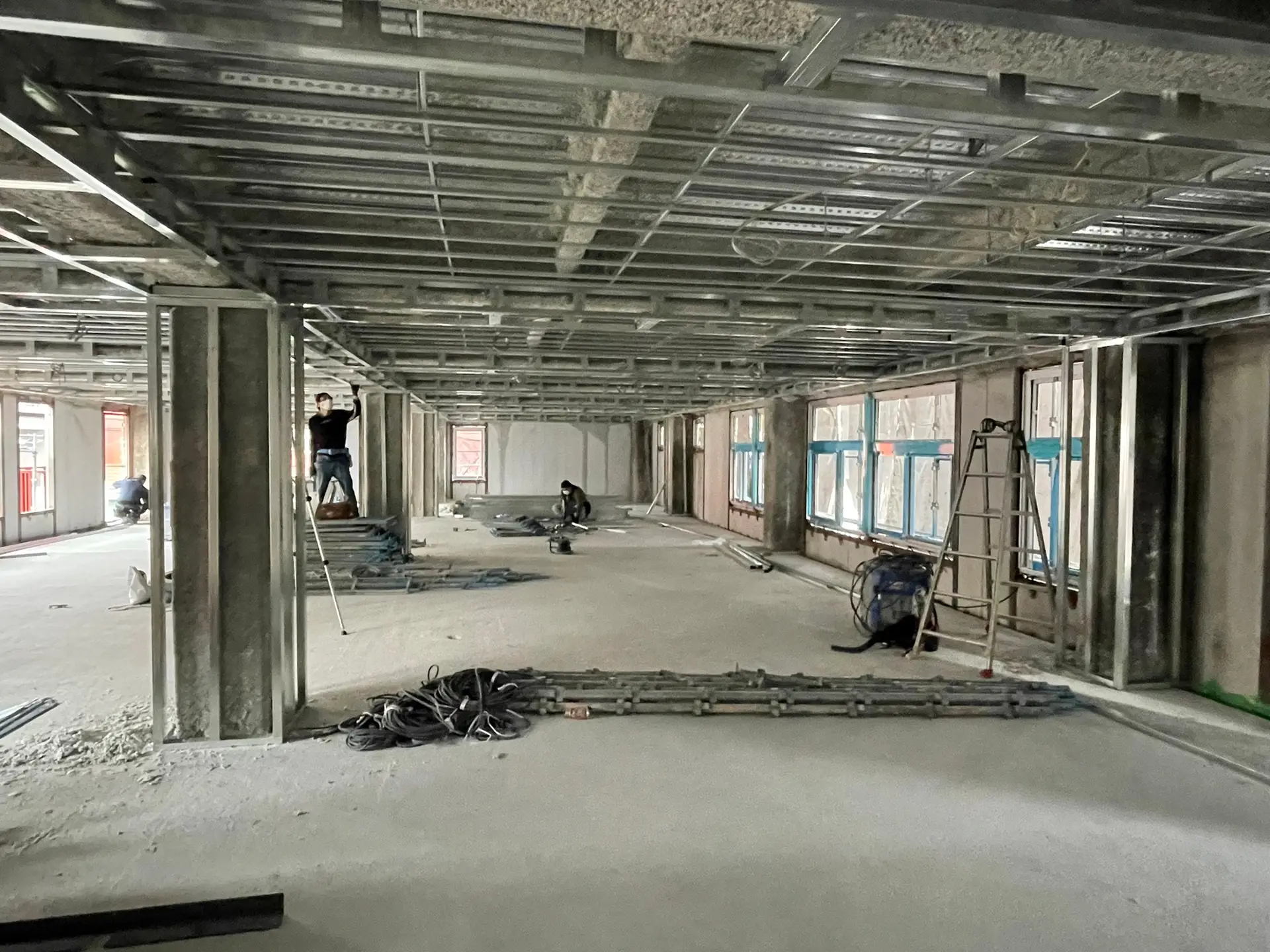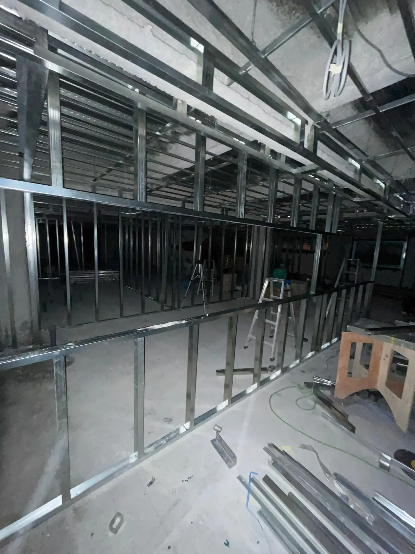 軽天工事を続けてしました。一階のキッチンと寮の一部分の枠ができました。セメントも入れました。感謝します。
