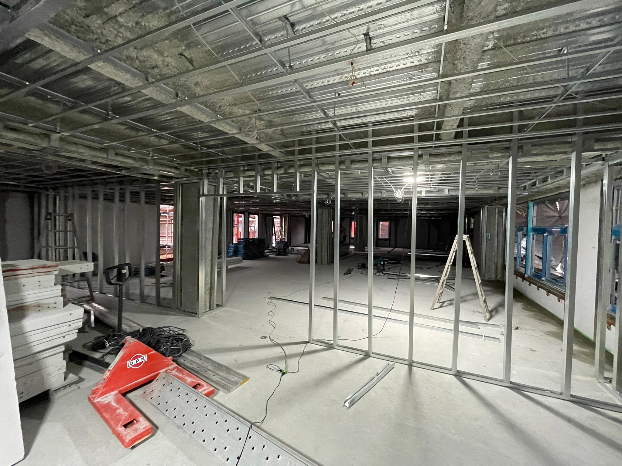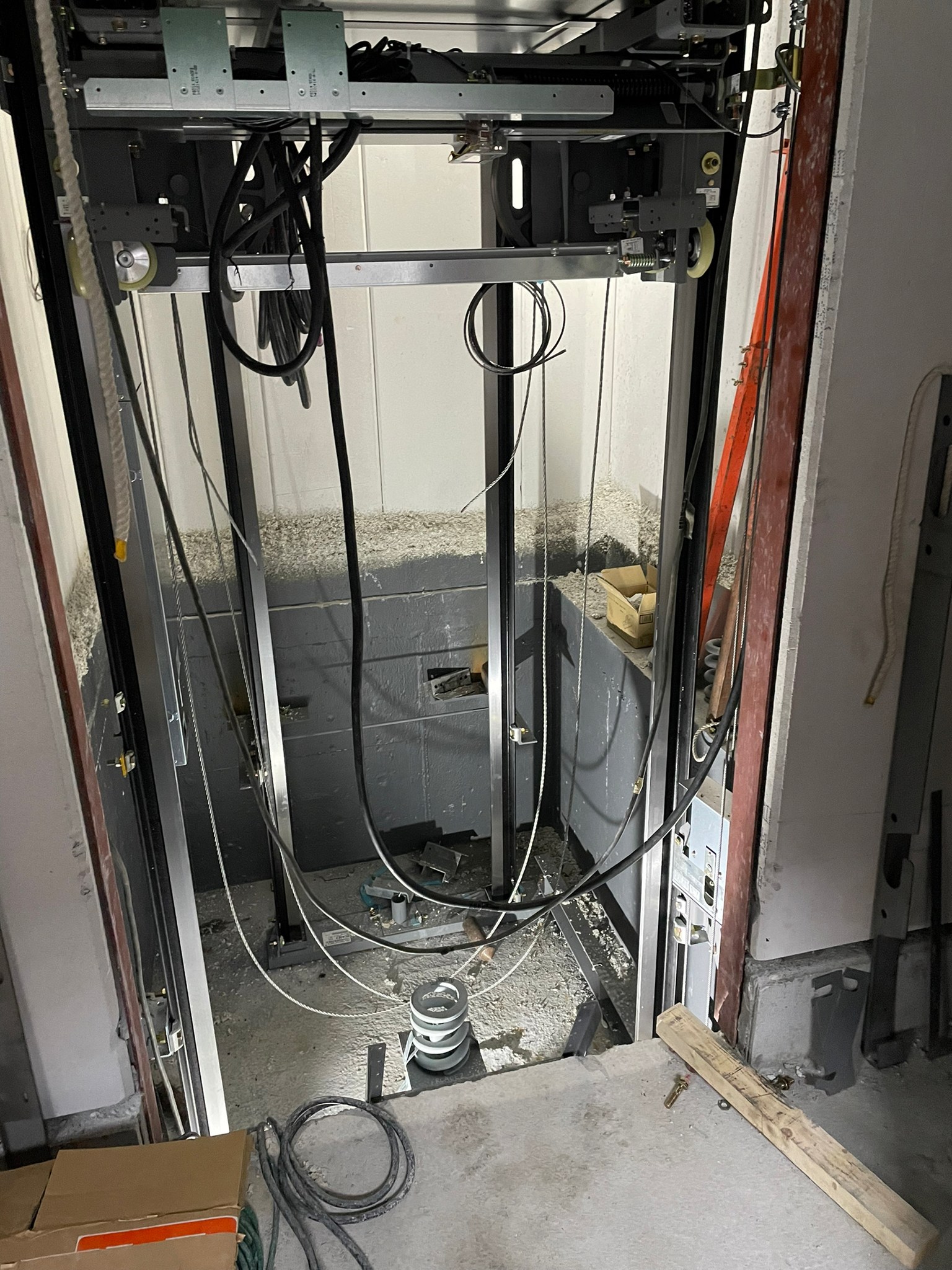 軽天工事、エレベーター工事をしました。二階の寮の一部の枠ができました。感謝します。