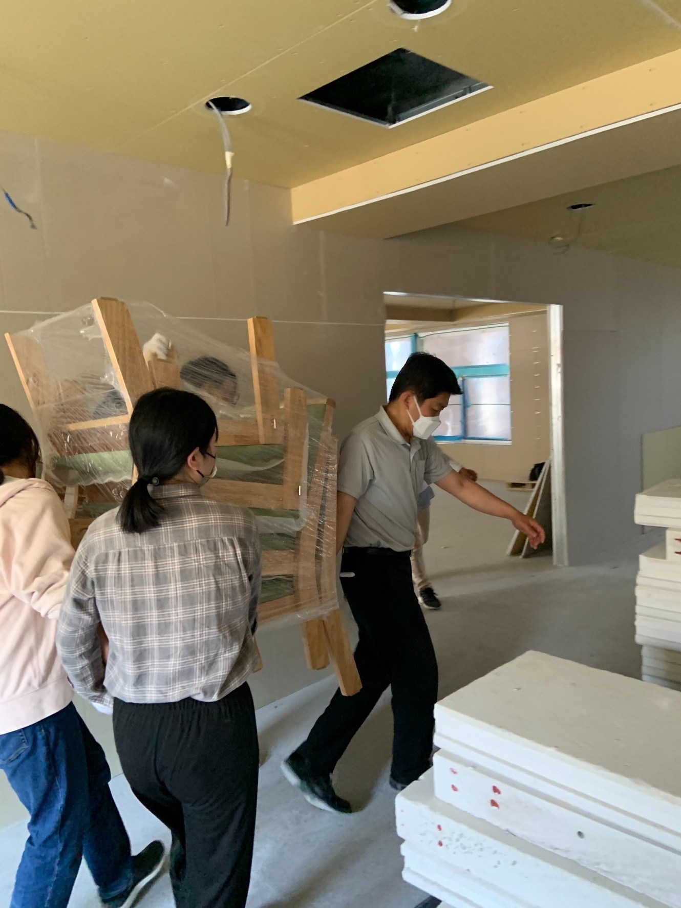 20人ぐらいの兄弟姉妹たちが来られて、新聖殿の椅子を運びました。三階の壁ほとんど終わりました。講壇、通訳室、音響室と授乳室も出来ました。壁紙、電気工事も続けてしました。感謝します。