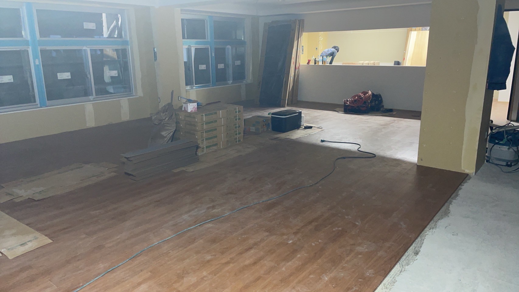 三階はほとんど終わっています。二階のプロリングも終わりました。一階のプロリングも始めました。電気工事、ベランダ、エレベーター、壁紙工事をしました。感謝します。